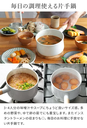 熱伝導性・保温性に優れ、みそ汁やスープ、野菜の下ゆでなど日々の定番料理に大活躍します。